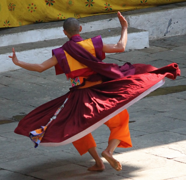 I recently met the vice principal of Bhutan’s Royal Academy for Performing Arts, Mr. Tshering, who a few years ago earned an MFA in performing arts at the University of Montana in Missoula. “There was a lot of culture shock,” he admitted. What was most difficult, I asked. “The timing,” he said. He experienced USA time as somewhat overly structured and stressful; people always hurrying here and there. He knew people who, he said with his eyes wide, ate lunch at their desks and read the newspaper on the toilet! This conversation took place, by the way, while he and I and Ruth were relaxing in the sun just after the second tea break of the day, as the RAPA dancers, swaying and turning on the grassy field near the dzong, practiced for the upcoming Punakha Tshechu, an annual religious festival. When he returned to Bhutan from Montana, Tshering confessed, he’d adopted some, not all, of these more Western attitudes about time, and tended to be a bit of a task master with trainees and students. “If you know there will be a traffic jam,” for instance, he said, “you should leave 30 minutes earlier so you don’t keep others waiting.”