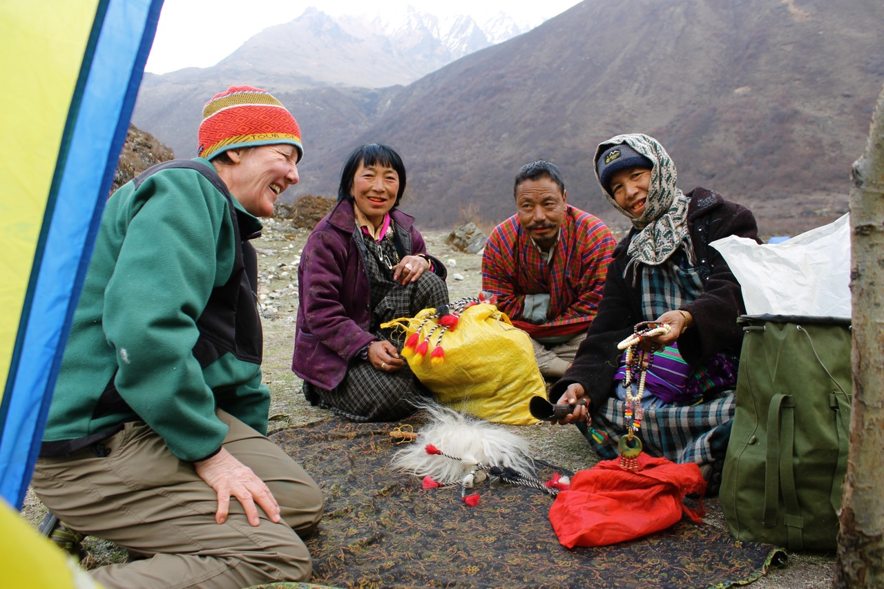 The highlight of our trek was a cup of hot, sweet yak milk tea served to us by Kelzang Om, the wife of yak-herder and village headman Pema Khandoor, whose family had just that week moved to their summer home in the high mountains, along with their 60 plus yaks. We got to meet three-month old baby Karma Dorji and his mother Ugyen, sister of our horseman, Tshering Penjor.