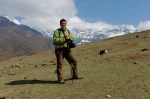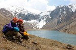 The rest of that glorious day, we walked along the steep shale slopes beside two deep turquoise high alpine lakes above Jangothang (14,500 feet), gazing upon herds of blue sheep and watching a pair of ruddy shell ducks as they made their journey to their summer home in the waters below.