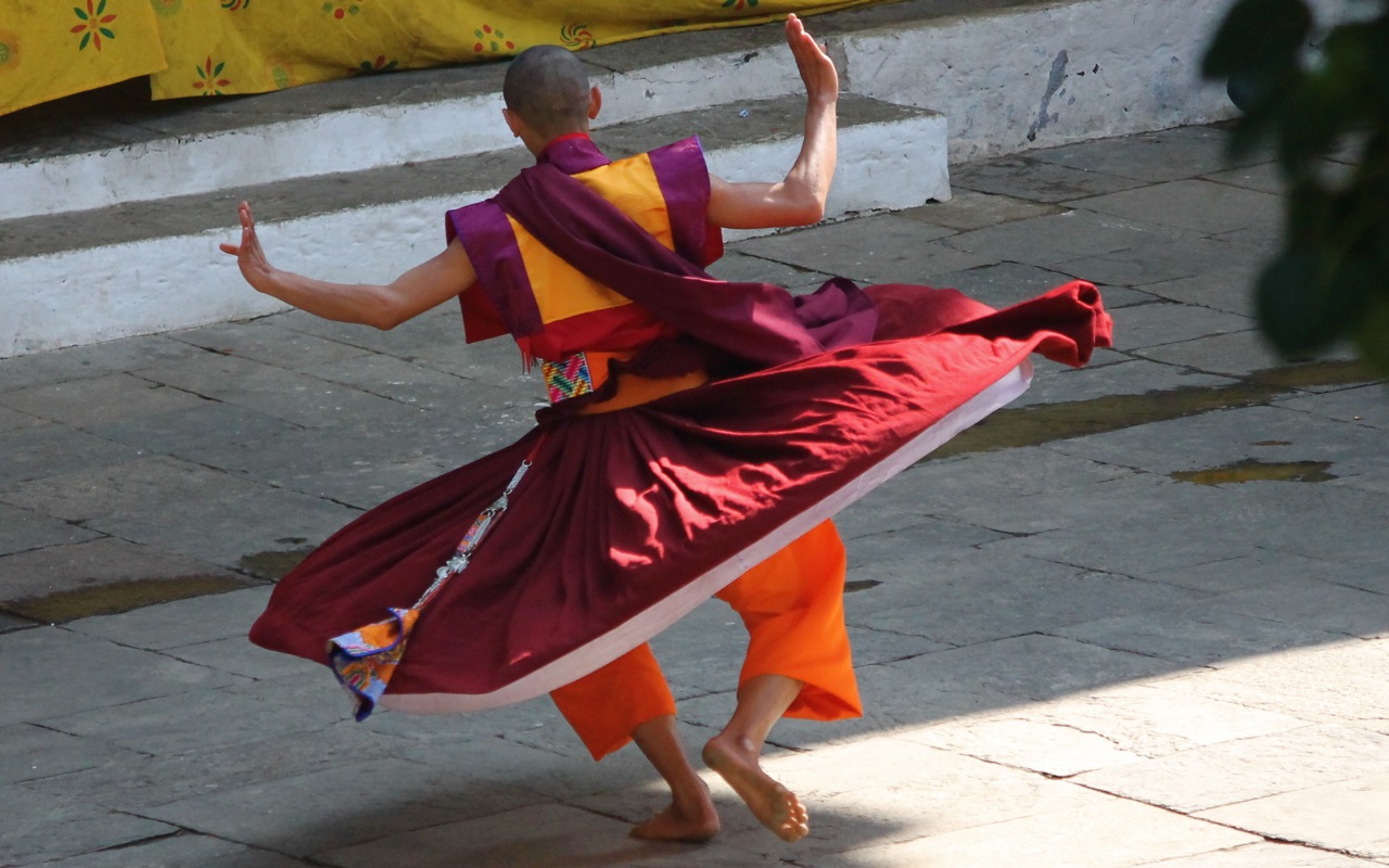 Monk rehearing masked dance
