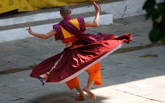 Monk rehearing masked dance for upcoming Punakha Tsechu